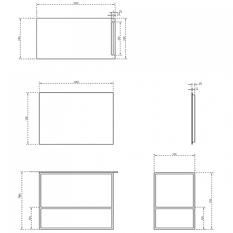 - Размеры (ШхВхД): 1060х780х550 мм.