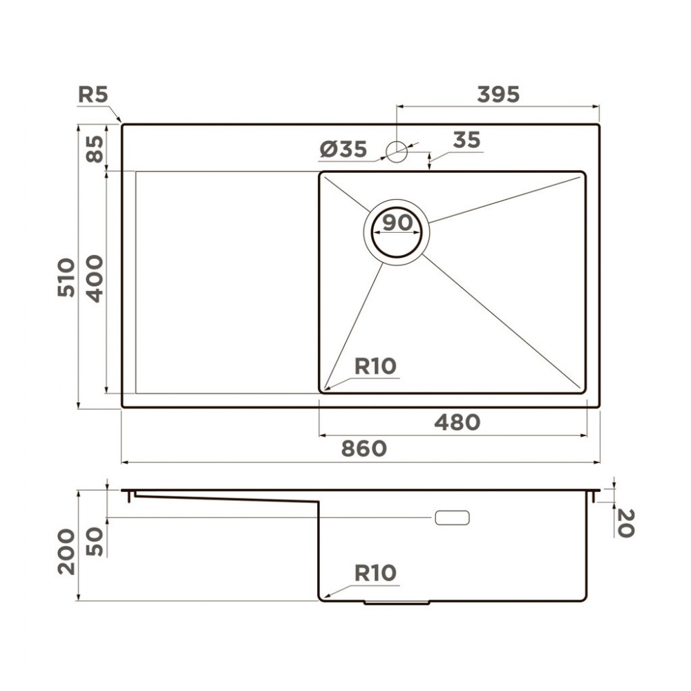 Кухонная мойка Omoikiri Akisame 86-GB-R Side