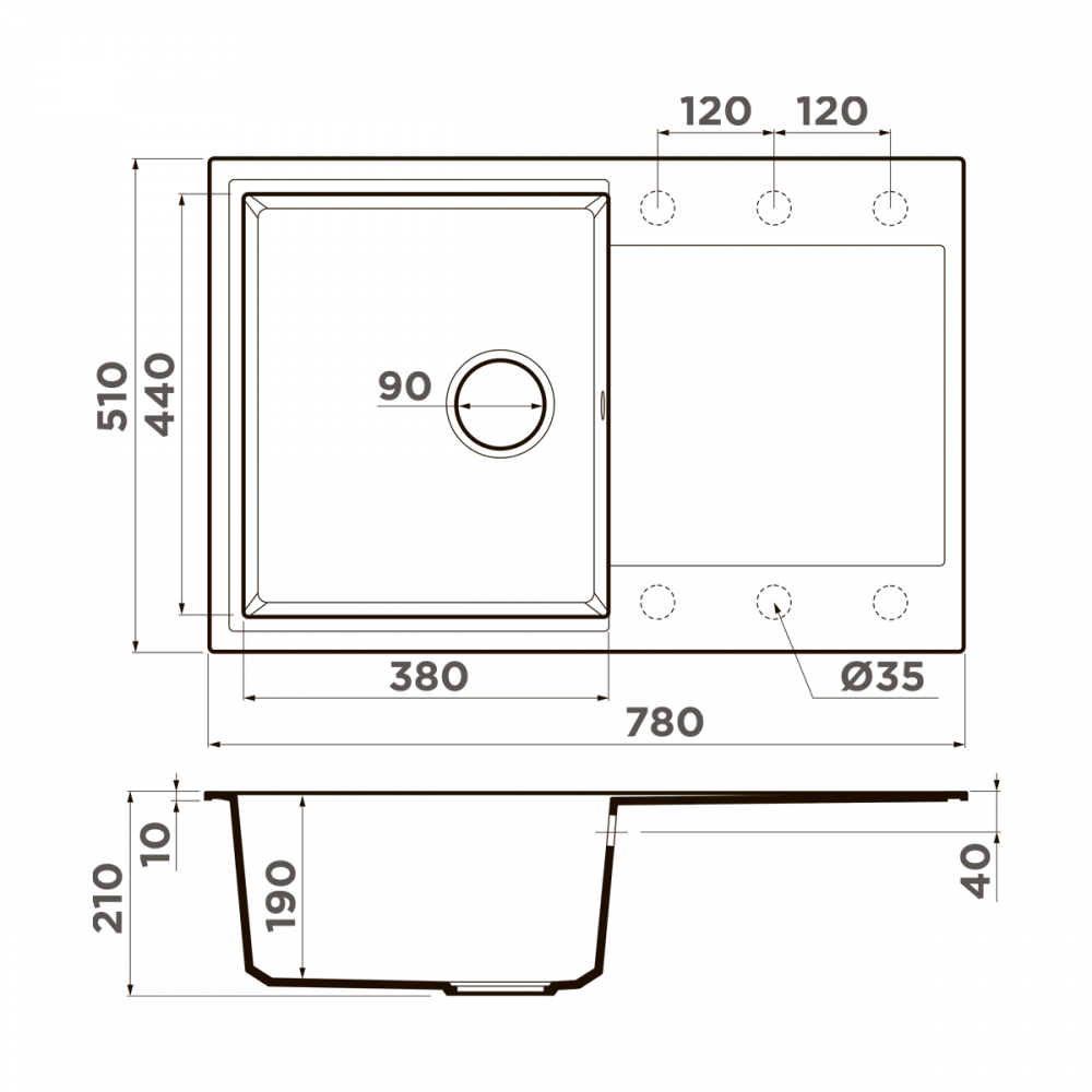 • Материал выдерживает высокие температуры до 280°С (но не стоит ставить на поверхность мойки горячие сковородки и кастрюли, т.к их температура может достигать 500°С).