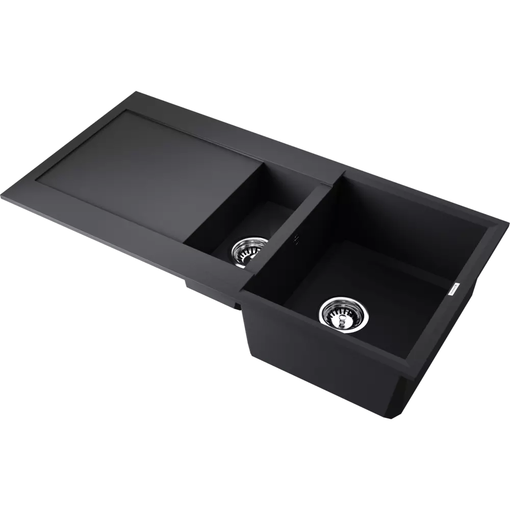 • Мойка черного цвета создана из материала «Tetogranit Metal». В его составе: акриловая смола и натуральный гранит с добавлением металлических частиц, которые придают блеск и мерцание поверхности мойки. «Tetogranit Metal» отличается максимальной устойчивостью к температурным перепадам и ударам;