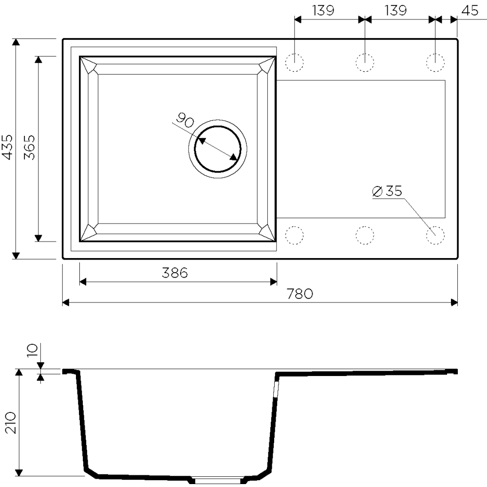 • Мойка черного цвета создана из материала «Tetogranit Metal». В его составе: акриловая смола и натуральный гранит с добавлением металлических частиц, которые придают блеск и мерцание поверхности мойки. «Tetogranit Metal» отличается максимальной устойчивостью к температурным перепадам, ударам, царапинам и пятнам;
