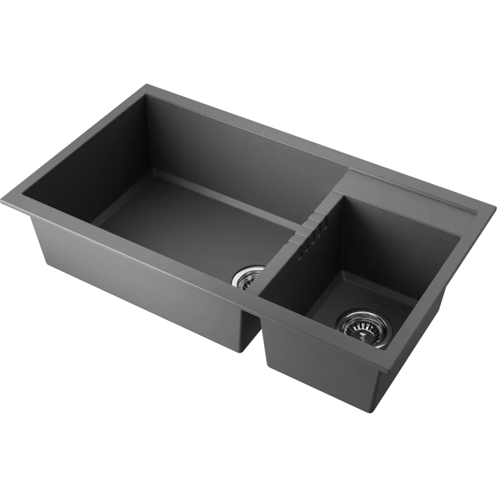 • Мойка черного цвета создана из материала «Tetogranit Metal». В его составе: акриловая смола и натуральный гранит с добавлением металлических частиц, которые придают блеск и мерцание поверхности мойки. «Tetogranit Metal» отличается максимальной устойчивостью к температурным перепадам, ударам, царапинам и пятнам;