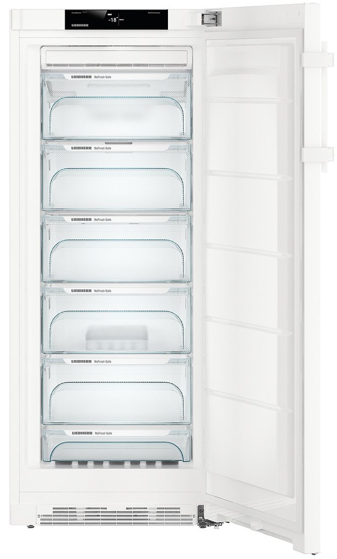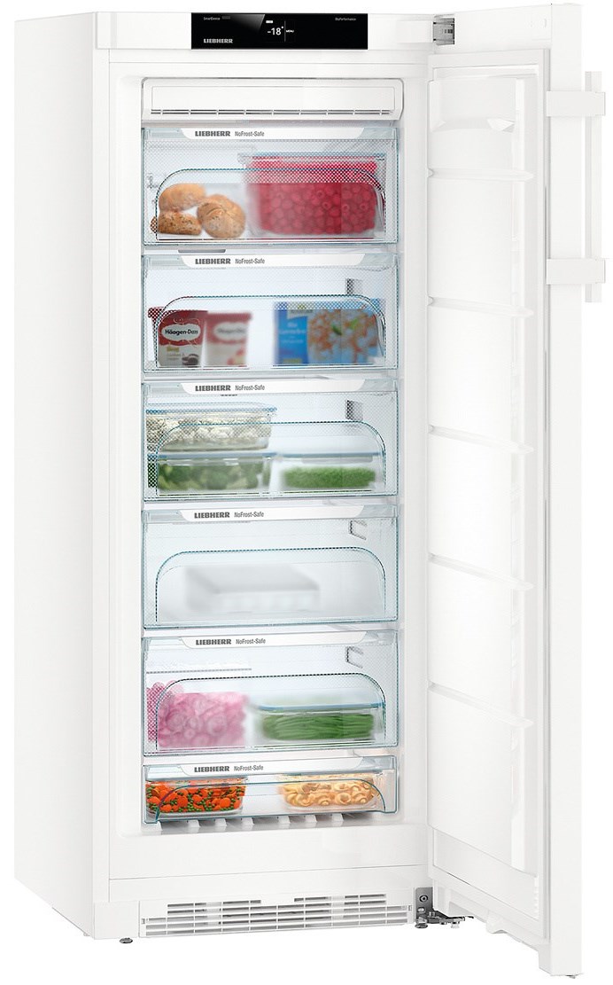 Класс энергоэффективности E морозильной камеры LIEBHERR GN 3235 COMFORT NOFROST экономит ресурсы на 20% по сравнению с аналогами класса A. Корпус выполнен из стали повышенной прочности. Полезный объем составляет 192 л, этого параметра достаточно, чтобы удовлетворить бытовые запросы среднестатистической семьи из четырех человек. Уровень шума в 38 дБ не доставляет акустического дискомфорта обладателю. Дверной упор находится справа, но есть возможность навесить с другой стороны. Ручка оборудована встроенным толкателем. Внутреннее пространство состоит из 6 ящиков, изготовленных по инновационной и технологии FrostSafe, и лотка для производства кубиков льда. Электронное управление, простое и интуитивно понятное, осуществляется по средствам сенсорных переключателей. Вся необходимая информация о работе прибора отображается на 2.4-дюймовом монохромном TFT-дисплее. Гарантия от производителя составляет 24 месяца.