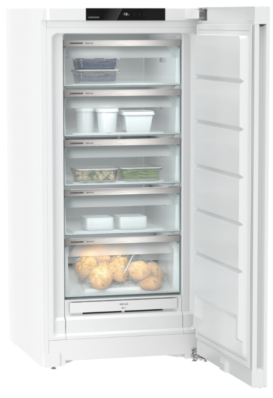 Морозильник Liebherr FND 6625 представляет собой высококачественную бытовую технику, произведенную в Германии. Этот отдельностоящий морозильник-шкаф включен в премиальную серию Plus и обладает классом энергопотребления E, что соответствует старому обозначению A++. Дизайн устройства выполнен в классическом белом цвете, корпус и дверь изготовлены из прочной стали. Справа расположен дверной упор, но при необходимости двери можно перевесить. Для удобства использования предусмотрен механизм EasyOpen и закрывающий механизм.