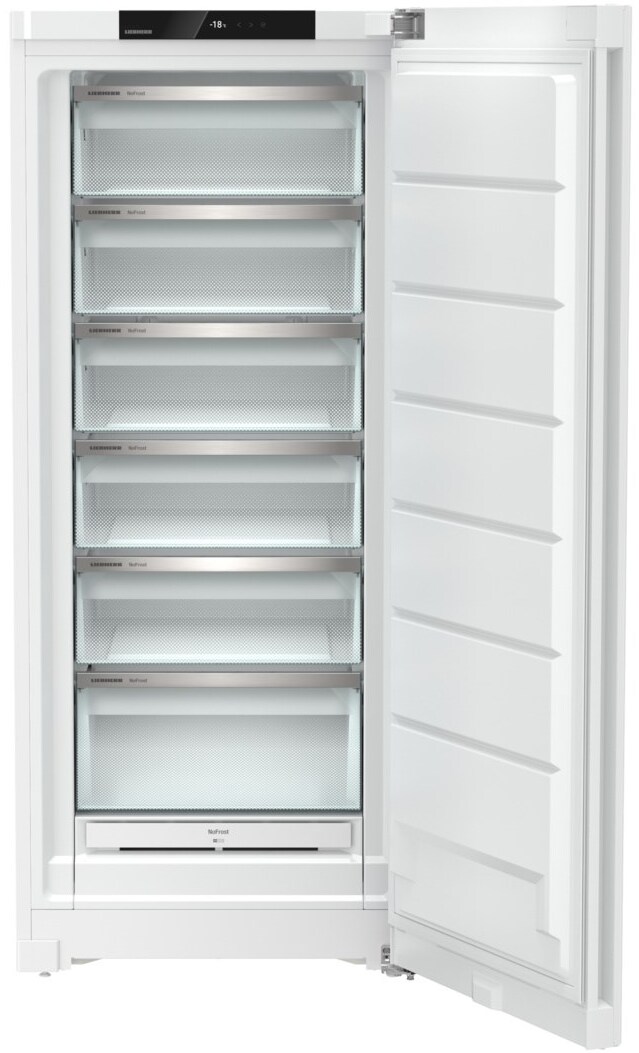 Морозильник Liebherr FNd 7026 оснащен системой No frost, она циркулирует холодный воздух не образуя льда на стенках устройства. VarioSpace позволяет вместить целый торт, благодаря регулированию внутренних контейнеров, вы можете вынуть их, чтобы освободить больше места. Функция SuperFrost позволяет заморозить свежие продукты и сохранив их полезные свойства, функция отключается самостоятельно через 65 часов.