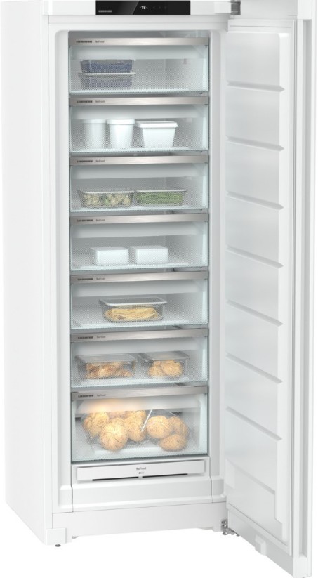 Морозильник Liebherr FND 7227 представляет собой воплощение современных технологий и эстетики в области бытовой техники. Произведенный в Германии, этот морозильник-шкаф класса Plus из линейки BluPerformance предлагает превосходное качество и надежность, подтверждаемую двухлетней гарантией производителя. Со внешней стороны устройство поражает своим строгим и современным дизайном. Белый стальной корпус и дверь, встроенная ручка и изящные сенсорные элементы управления на ЖК-дисплей создают элегантный и минималистичный образ, который идеально впишется в любой интерьер. Справа расположен дверной упор, но при необходимости двери могут быть перевешены.
