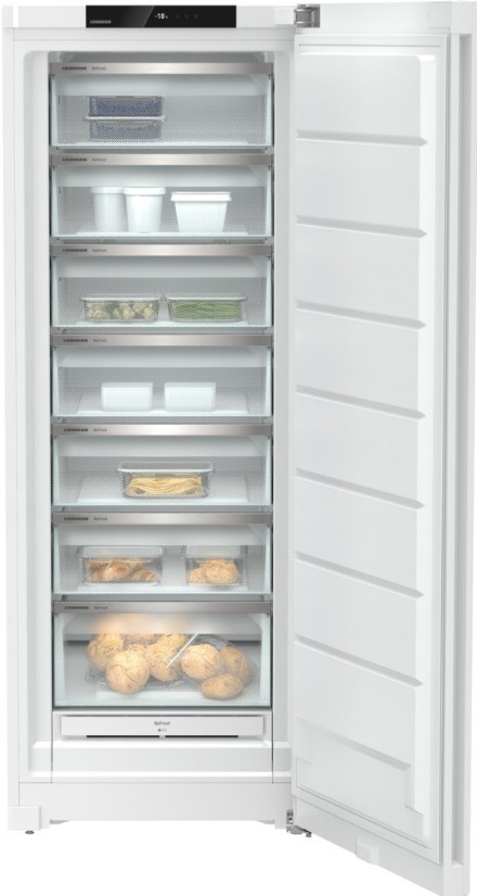 Система VarioSpace позволяет изменять внутреннее пространство морозильника в зависимости от размера хранимых продуктов. Морозильник Liebherr FND 7227 оснащен также индикаторами включения питания, режима SuperCool, защиты от детей и температуры морозильной камеры. Он поддерживает технологию SmartDevice-Box, которая позволяет управлять устройством с помощью смартфона или планшета. Устройство энергоэффективно, соответствует классу энергопотребления D (старое обозначение — A+++), что позволяет снизить расходы на электроэнергию. Благодаря регулируемым ножкам и транспортировочным ручкам сзади, морозильник легко устанавливается и перемещается.