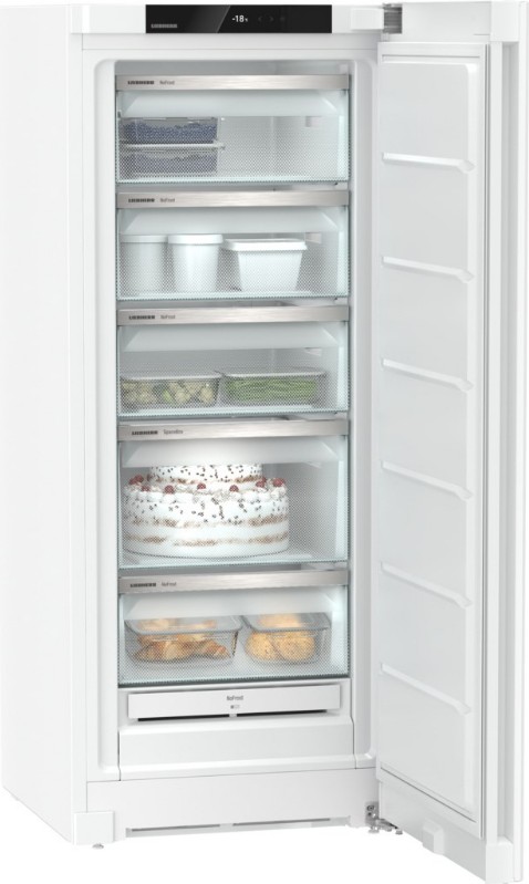 Морозильник Liebherr FNE 4605 — это продукт немецкого качества и инновационных технологий, предназначенный для тех, кто ценит комфорт и функциональность в повседневной жизни. Это отдельностоящий морозильник-шкаф класса Pure (Comfort) из серии BluPerformance, оснащенный всеми необходимыми функциями для эффективного хранения продуктов. Внешний вид данного морозильника впечатляет своей простотой и элегантностью. Белый корпус из стали, скрытая ручка двери и сенсорные элементы управления, расположенные за дверью, создают стильный и современный образ. При этом устройство имеет компактные габариты (145.5×59.7×67.5 см), что позволяет установить его даже в небольшой кухне.