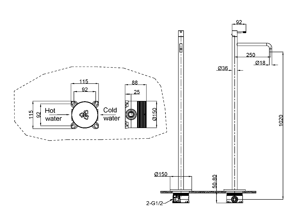 - Высота излива: 102 см
