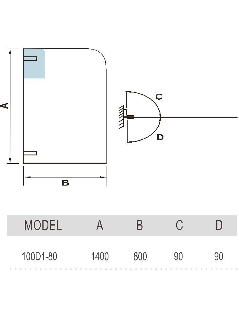 Стеклянная шторка на ванну WeltWasser WW100 80 100D1-80 распашная, односекционная. Универсальная установка: слева или справа.