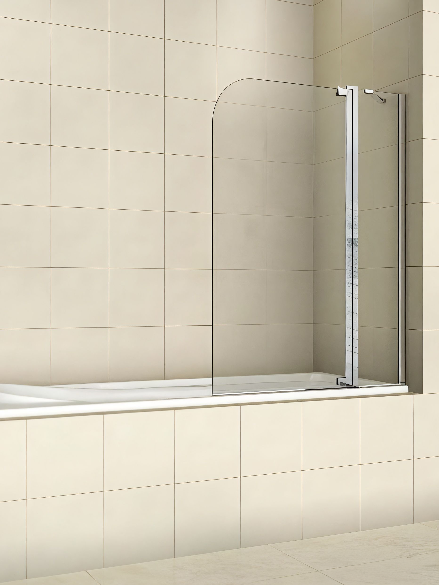 Стеклянная шторка на ванну WeltWasser WW100 100 100T2-100 распашная, двухсекционная. Регулируемый пристенный профиль. Универсальная установка: слева или справа.