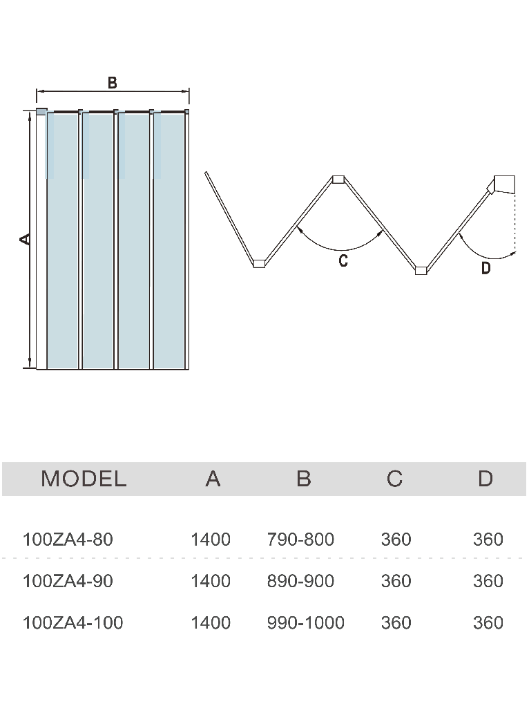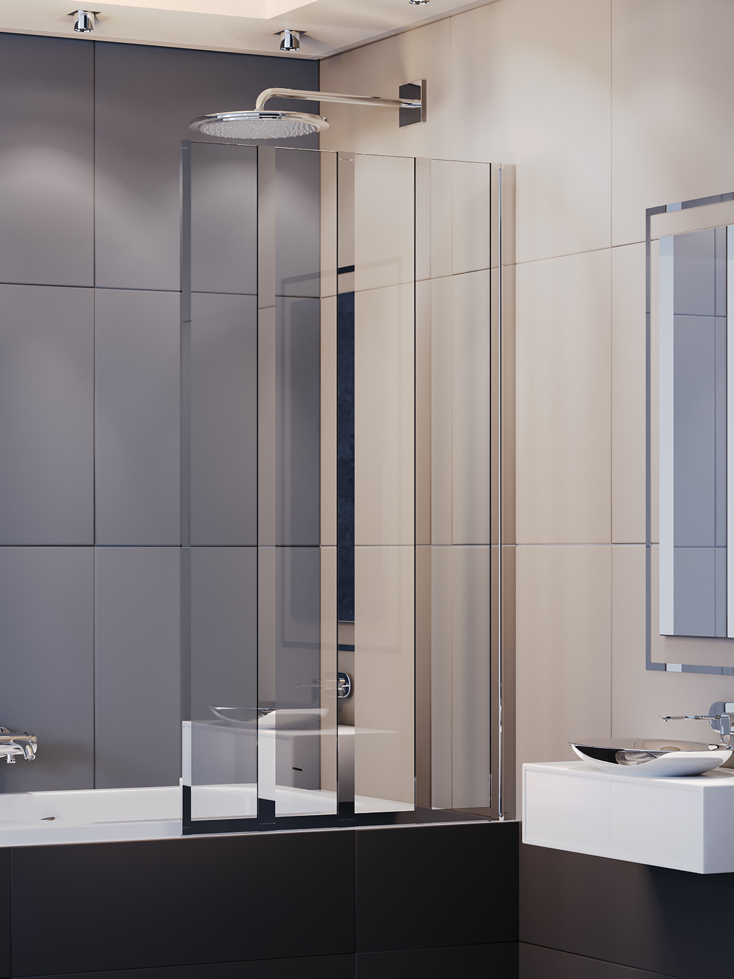 Стеклянная шторка на ванну WeltWasser WW100 100 100ZA4-100 складная, четырехсекционная. Регулируемый пристенный профиль. Универсальная установка: слева или справа.