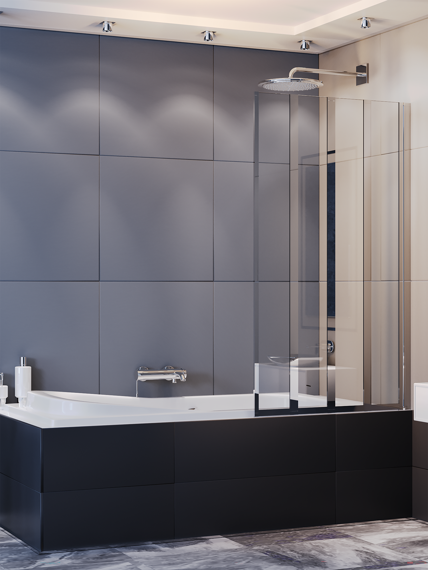 Стеклянная шторка на ванну WeltWasser WW100 80 100ZA4-80 складная, четырехсекционная. Регулируемый пристенный профиль. Универсальная установка: слева или справа.