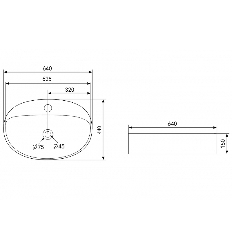 - Размеры (ШхВхД): 640x150x440 мм.