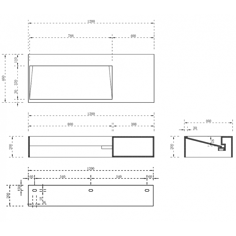- Габариты (ШхВхГ): 1200х200х460 мм.
