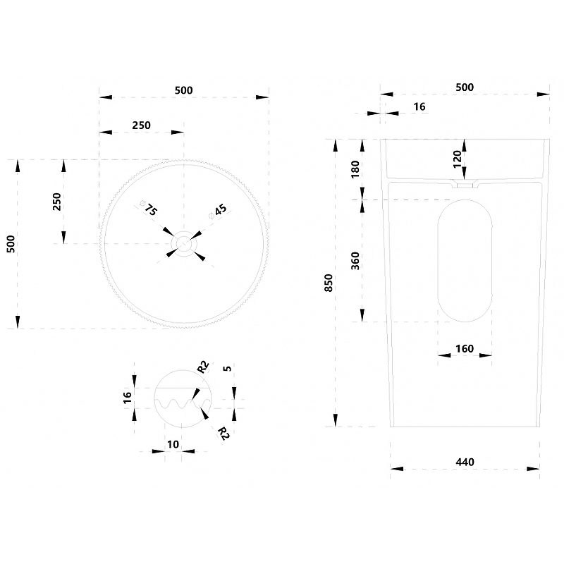 - Размеры (ШхВхГ): 500х850х500 мм.