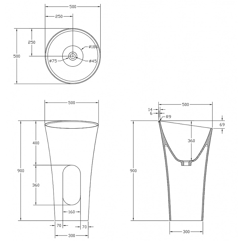 - Размеры (ШхВхГ): 500х900х500 мм.