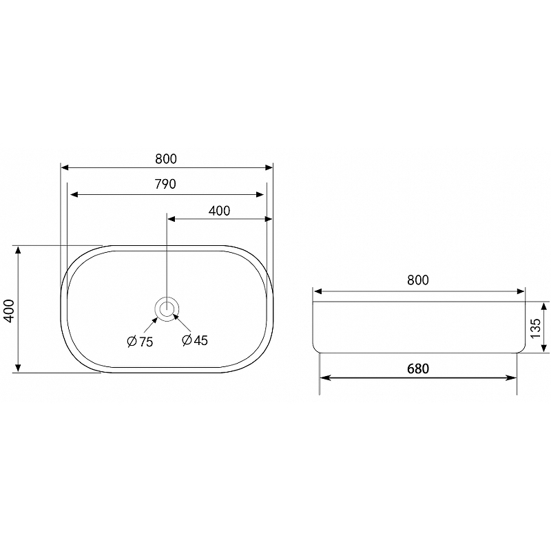 - Размеры (ШхВхД): 800x135x400 мм.