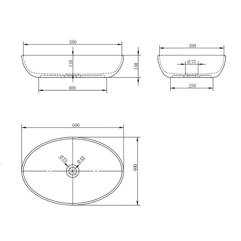 - Размеры (ШхВхГ): 600х130х400 мм.
