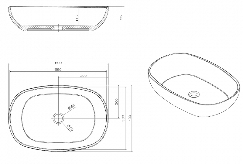 Раковина-чаша Abber Kristall 60 AT2805Onyx.