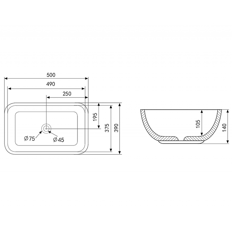 Раковина-чаша Abber Rechteck 50 AC2202MBE.