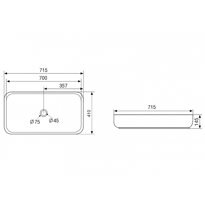 Раковина-чаша Abber Rechteck 71 AC2210MG.