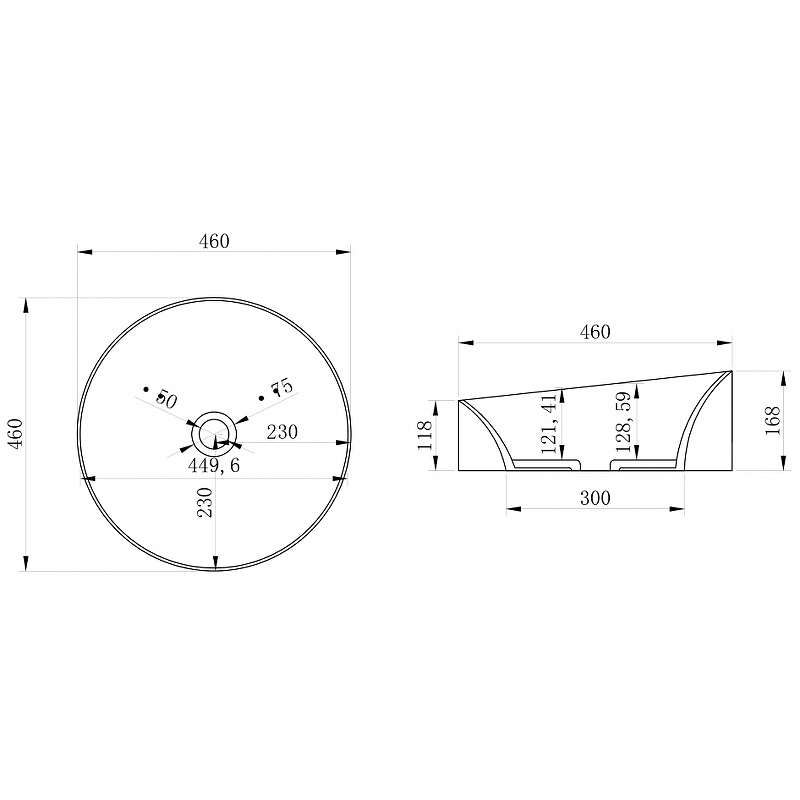 - Размеры (ШхВхГ): 460х168х460 мм.