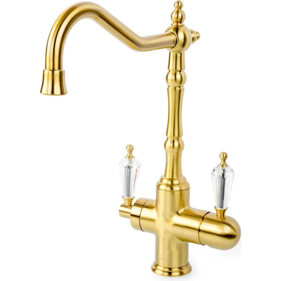 Смеситель Medici Ripresa порадует поклонников интерьеров в ретростиле. Изящная модель изготовлена из латуни с износостойким покрытием PVD бронзового цвета, сохраняющим приятное сияние на протяжении всего периода эксплуатации. Подключается к фильтру и обеспечивает подачу очищенной воды через дополнительный канал в поворотном изливе. Управление потоками осуществляется 2 рычагами. Устройство герметично и рассчитано на долгий срок службы.