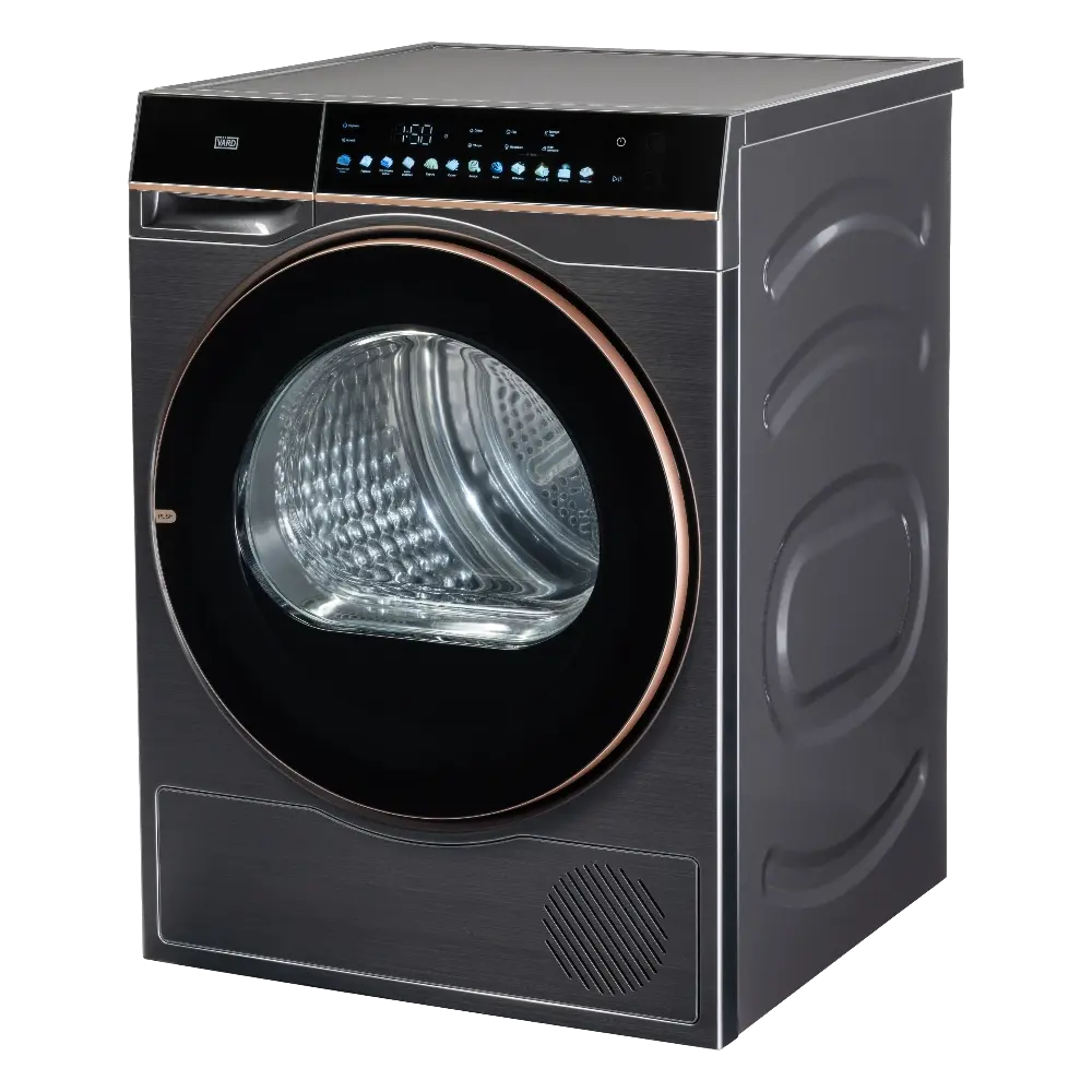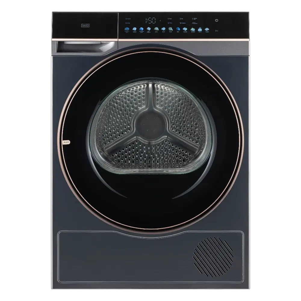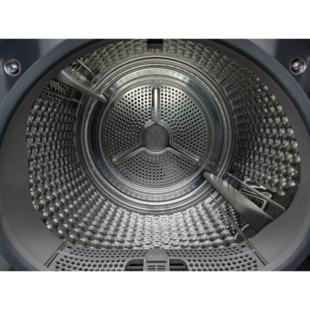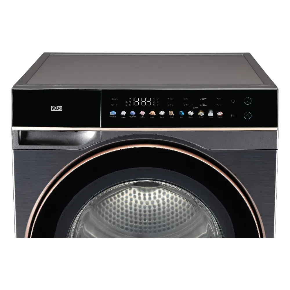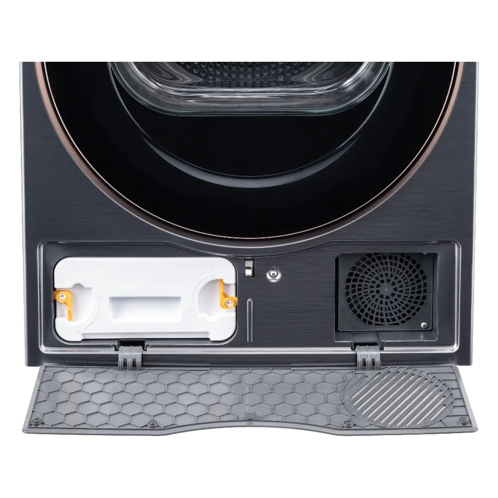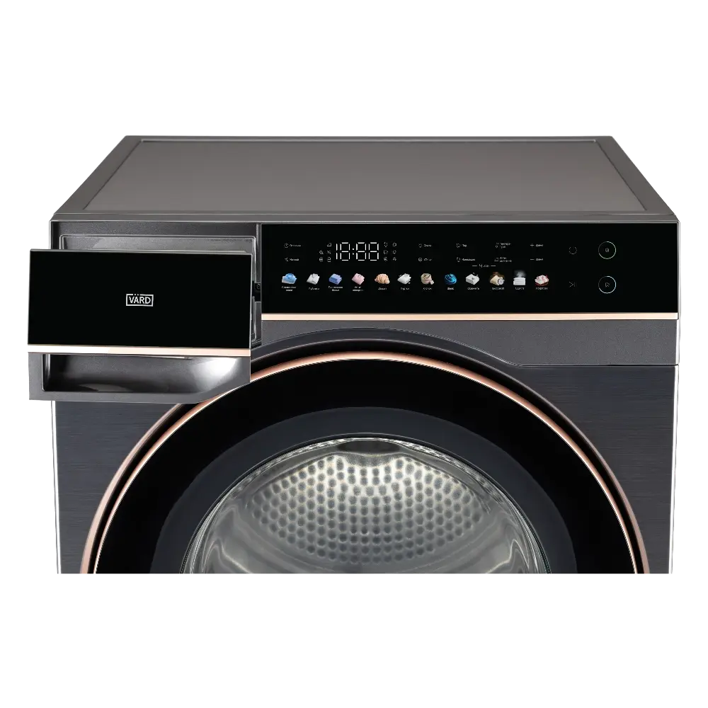 Сушильная машина серого цвета с эксклюзивной медной отделкой, максимальной загрузкой 10 кг и технологией сушки Heat pump сочетает в себе лаконичный дизайн и передовые технологии. Heat pump 10 кг, цветная сенсорная панель управления, Dual invertor, Пар, UV луч управления, Auto dry,Люк 36 см, Барабан 52 см, Pillow Drum,серый