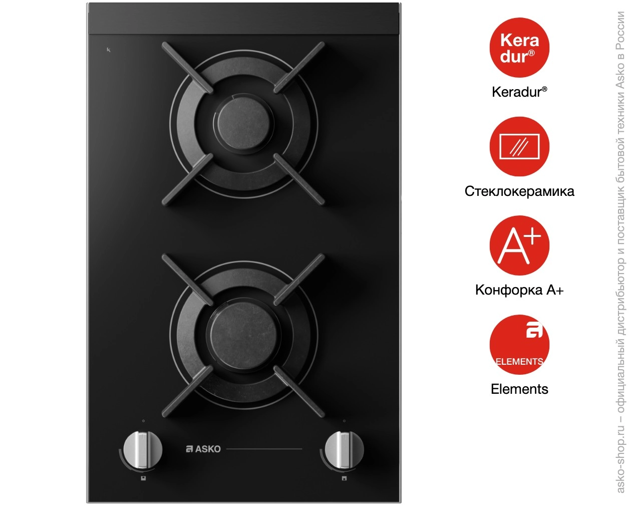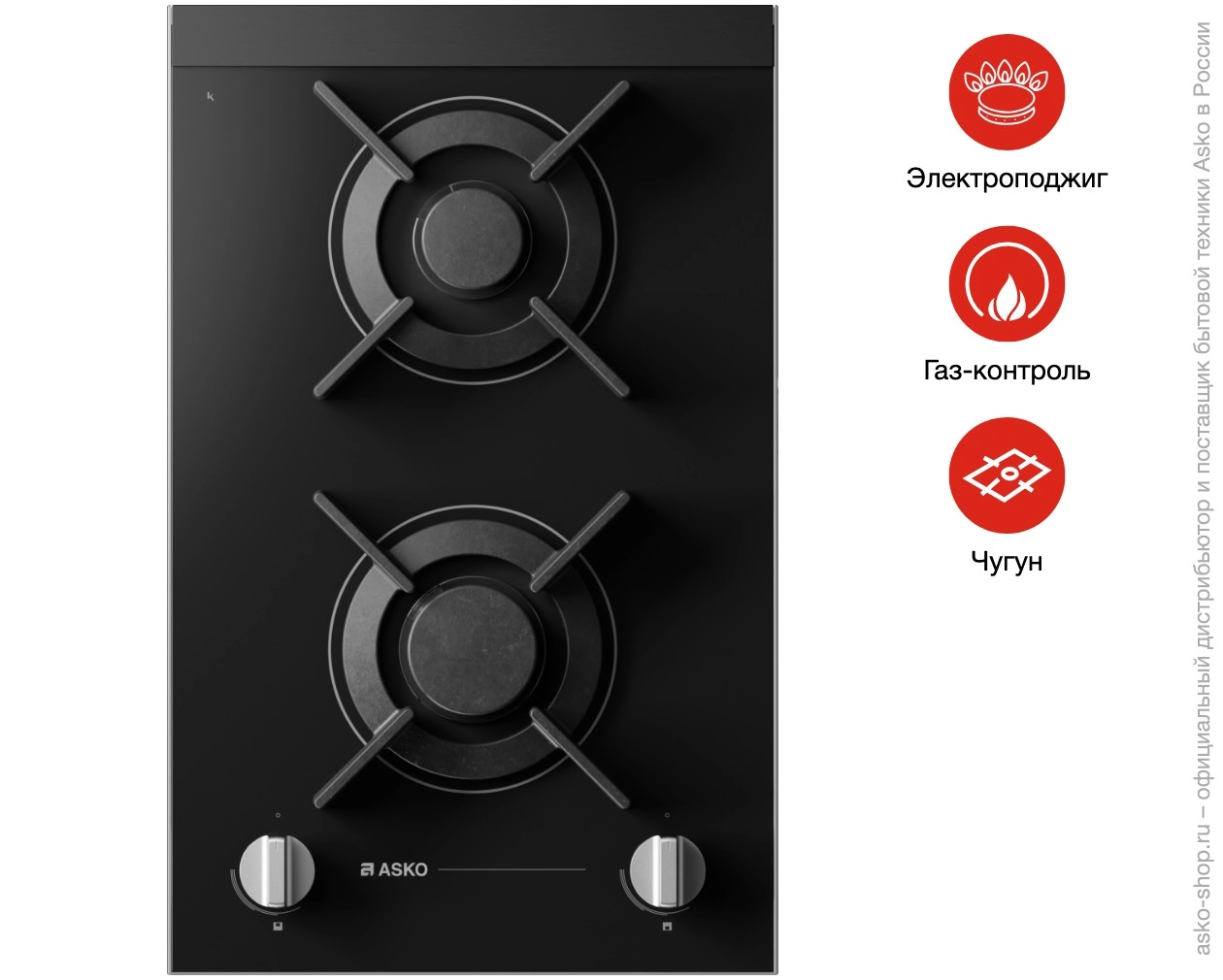 Варочная панель ASKO HG8320BGB1 — модель домино с двумя горелками и поверхностью из стеклокерамики.