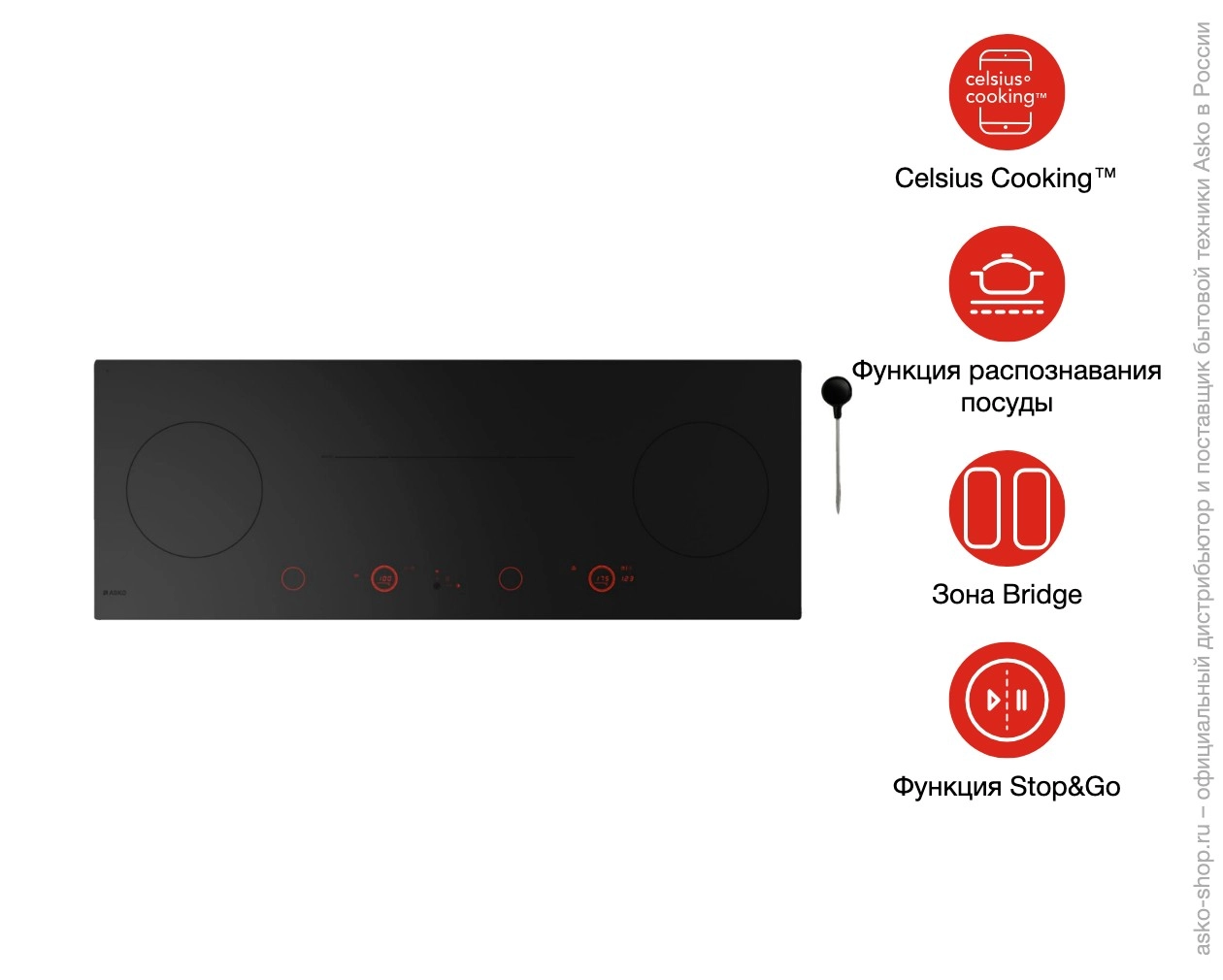 _x000D__x000D_ В серию Celsius Cooking™ входят несколько аксессуаров (термозонд, сковорода и сотейник), которые через Bluetooth передают показатели фактической температуры на блок управления. В комплекте поставляется термощуп, который помогает контролировать температуру с точностью до 1 градуса при активации следующих программ:_x000D_