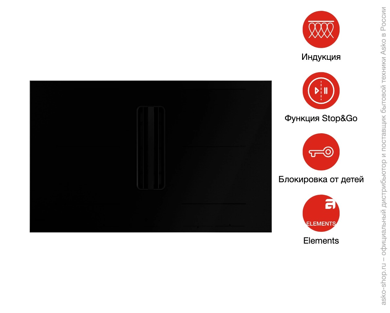 Варочная панель Asko HIHD854MM — модель c 4 индукционными конфорками, встроенной вытяжкой и системой Celsius Cooking™.