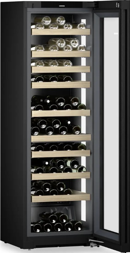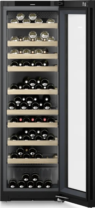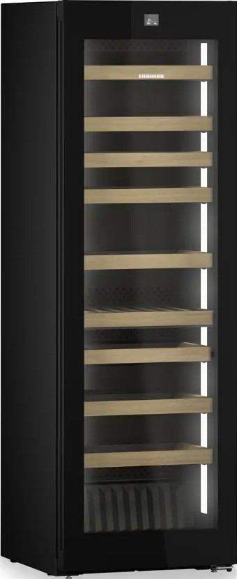 Этот винный шкаф вмещает до 106 бутылок и имеет общий объем 433 литра, из которых 349 литров являются полезными. Внутреннее пространство организовано с использованием десяти полок из натурального дерева, семь из которых расположены на телескопических направляющих, что обеспечивает удобство в использовании. Функция EasyFill облегчает загрузку, а система TempProtect Plus гарантирует стабильность температуры. Встроенный фильтр из активированного угля обеспечивает чистоту воздуха внутри, а циркуляционное охлаждение PowerCooling поддерживает равномерное распределение температуры.