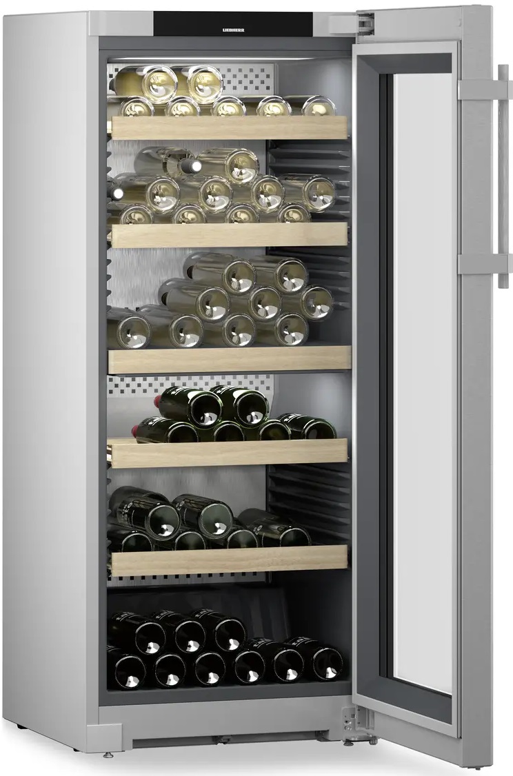 Винный шкаф Liebherr WPSD 4652 сочетает в себе сдержанную элегантность нержавеющей стали и продуманную технологию хранения коллекции, создавая оптимальные условия для выдержки и сервировки. Корпус из стали и фронт со стеклопакетом в рамке SmartSteel обеспечивают привлекательный внешний вид и устойчивость к отпечаткам, а эргономичная ручка из нержавеющей стали плавно вписывается в общий облик. Высота 145.4 см и габариты 59.7 × 67.5 см делают устройство самостоятельным решением для кухни или гостиной: модель выполнена как отдельностоящая единица с возможностью перенавешивания дверцы и регулировкой по высоте опор, что упрощает установку на неровной поверхности. Цвет нержавеющей стали и аккуратная отделка боковых стенок из стали придают интерьеру профессиональный характер, а стеклянная дверь с теплоизоляцией и рамой защищает содержимое от внешних колебаний температуры и ультрафиолетового излучения.