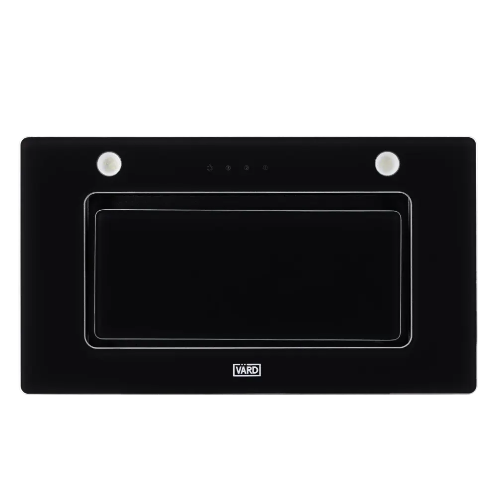 Полностью встраиваемая вытяжка с периметрическим всасыванием, ширина 52см, дизайн - чёрное стекло, сенсорное управление, воздушный поток 1000м3/час, пульт дистанционного управления