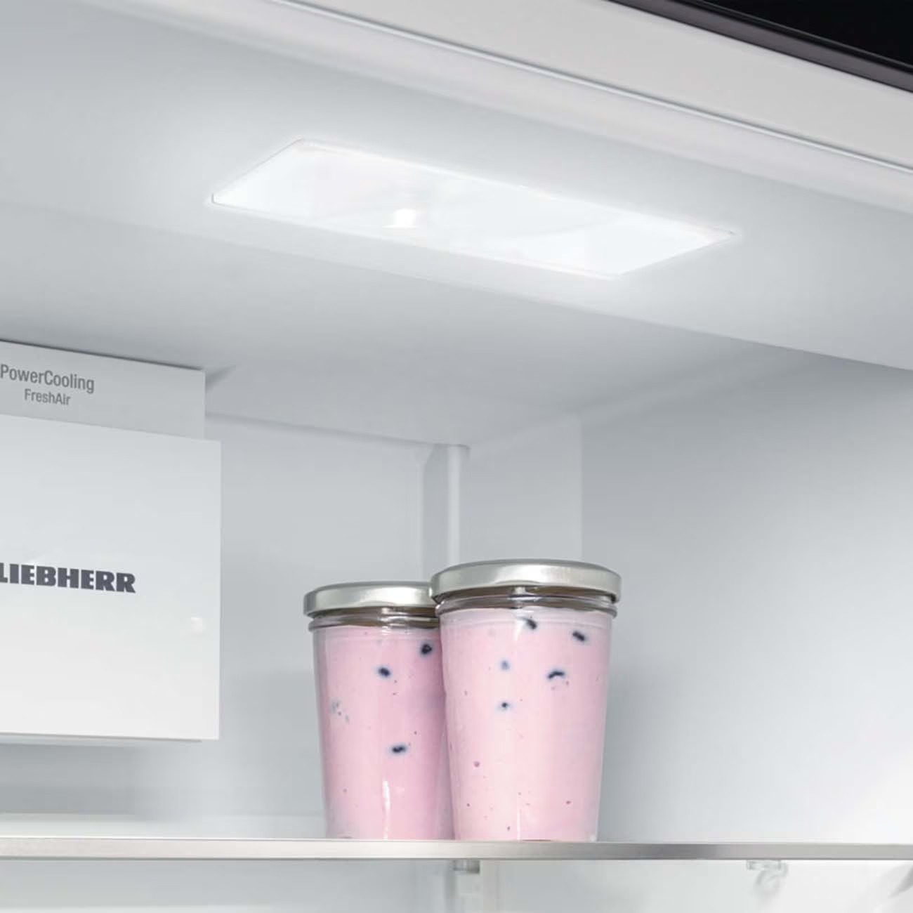 Встраиваемый холодильник Liebherr ICBSd 5122 Plus со слайдерным креплением мебельных фасадов подойдёт владельцам, не нуждающимся в большом морозильном отделении. Основные технологии направлены на комфорт и экономию электроэнергии. Можно дистанционно отслеживать работу прибора.