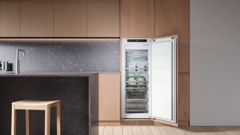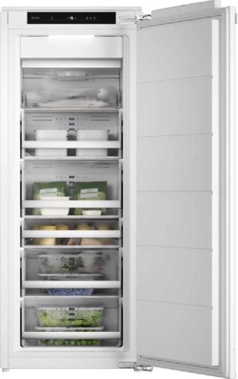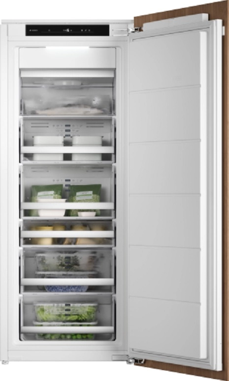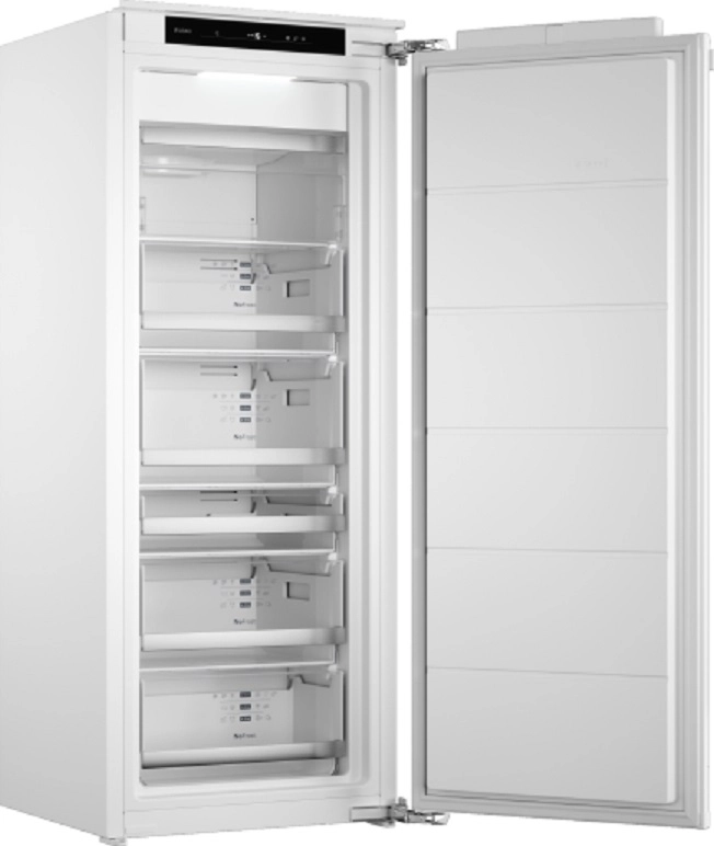 Встраиваемый морозильник Asko FN31442EI сочетает стиль и эффективность. Уровень шума составляет всего 38 дБ, а годовой расход электроэнергии — 171.46 кВт/ч (класс энергопотребления D). Дверь с системой крепления door on door дополнена звуковыми и световыми индикаторами. Минималистичный дизайн без ручки и оптимальный функционал делают этот морозильник идеальным выбором для современной кухни.