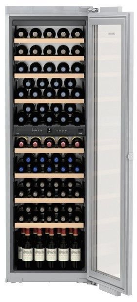 Встраиваемый винный шкаф Liebherr EWTdf 3553 Vinidor — это уникальное устройство, созданное для любителей и ценителей хорошего вина. Он может вместить до 80 бутылок стандартного объема и обладает 2 зонами, которые обеспечивают оптимальную температуру для разных видов вин, так что можно хранить в одном приборе и красные, и белые сорта, не нарушая рекомендованных параметров окружающей среды для каждого из них.