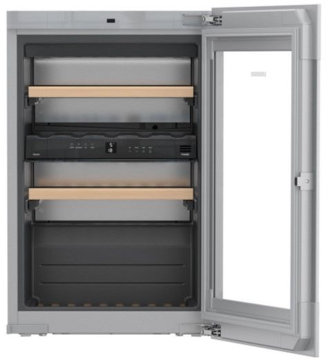 Встраиваемый винный шкаф Либхер EWTgw 1683 Vinidor имеет элегантную белую раму и встраивается в кухонную мебель, что позволяет органично вписать его в кухонный гарнитур, а также максимально использовать пространство. Полки винного шкафа изготовлены из натурального дерева, которое выглядит благородно и дорого, а также гасит вибрацию от работающего компрессора, не позволяя ей навредить вину. Две полки оснащены телескопическими направляющими, что обеспечивает удобство при использовании и обслуживании. Доводчик SoftSystem защищает от резких хлопков и не позволит оставить дверь открытой.