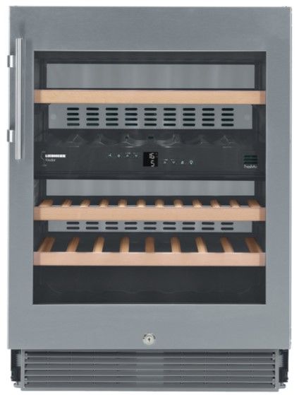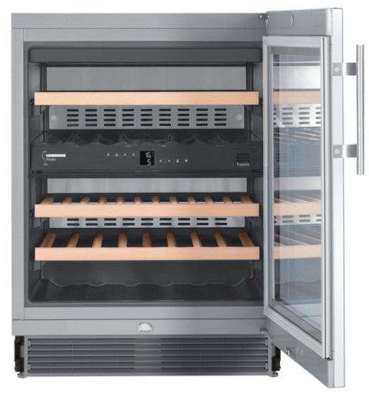 Встраиваемый винный шкаф Либхер UWTes 1672 Vinidor способен вмещать 34 стандартных бутылок. Дверь его выполнена из утолщенного изоляционного стекла и оснащена доводчиком SoftSystem для более мягкого закрывания. Внутренние полки сделаны из дерева на телескопических направляющих, что позволяет легко вынимать бутылки и обеспечивает защиту от вибраций, которые в противном случае могут негативно сказаться на качестве вина и даже привести к образованию осадка.