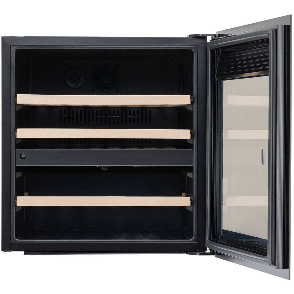 Преимущества вашего выбора: Вино чувствительно к УФ-излучению и может утратить свои качества после воздействия ультрафиолета. Снабжен сигналом открытой двери более минуты. Стекло дверцы имеет специальное покрытие, которое не пропускает УФ-лучи, обеспечивая сохранность вашего вина.Чтобы вино дольше сохраняло свои вкусовые качества, ему требуется особый температурный режим. Двойное тонированное стекло поддерживает требуемую температуру и защищает от вредного внешнего воздействия.В отличие от стандартных моделей, сенсорное управление размещено на дверце, а не внутри холодильника. Чтобы изменить температуру хранения вина, его не нужно открывать, предотвращая тем самым попадание тепла в холодильник.В лаконичном дизайне дверцы винного шкафа нет ручки — она открывается лёгким касанием при помощи механизма Push-Pull. Система хранения в винном шкафу разработана таким образом, чтобы в нём можно было разместить большое количество бутылок — до 36. Три деревянные полки, а также специальные выемки в дне винного шкафа обеспечивают эргономичное хранение.Красные и белые вина требуют различных температур хранения. Поэтому холодильник разделён на два контура охлаждения специальной полкой. Температура в каждой из зон выставляется на сенсорной панели на дверце. Благодаря особому расположению верхней полки винный шкаф позволяет разместить бутылки игристых вин или шампанского, которые отличаются более широким дном. Единообразие внешнего вида кухонной техники создаёт эффектность дизайна всей кухни, в каком бы стилевом решении она ни была создана.