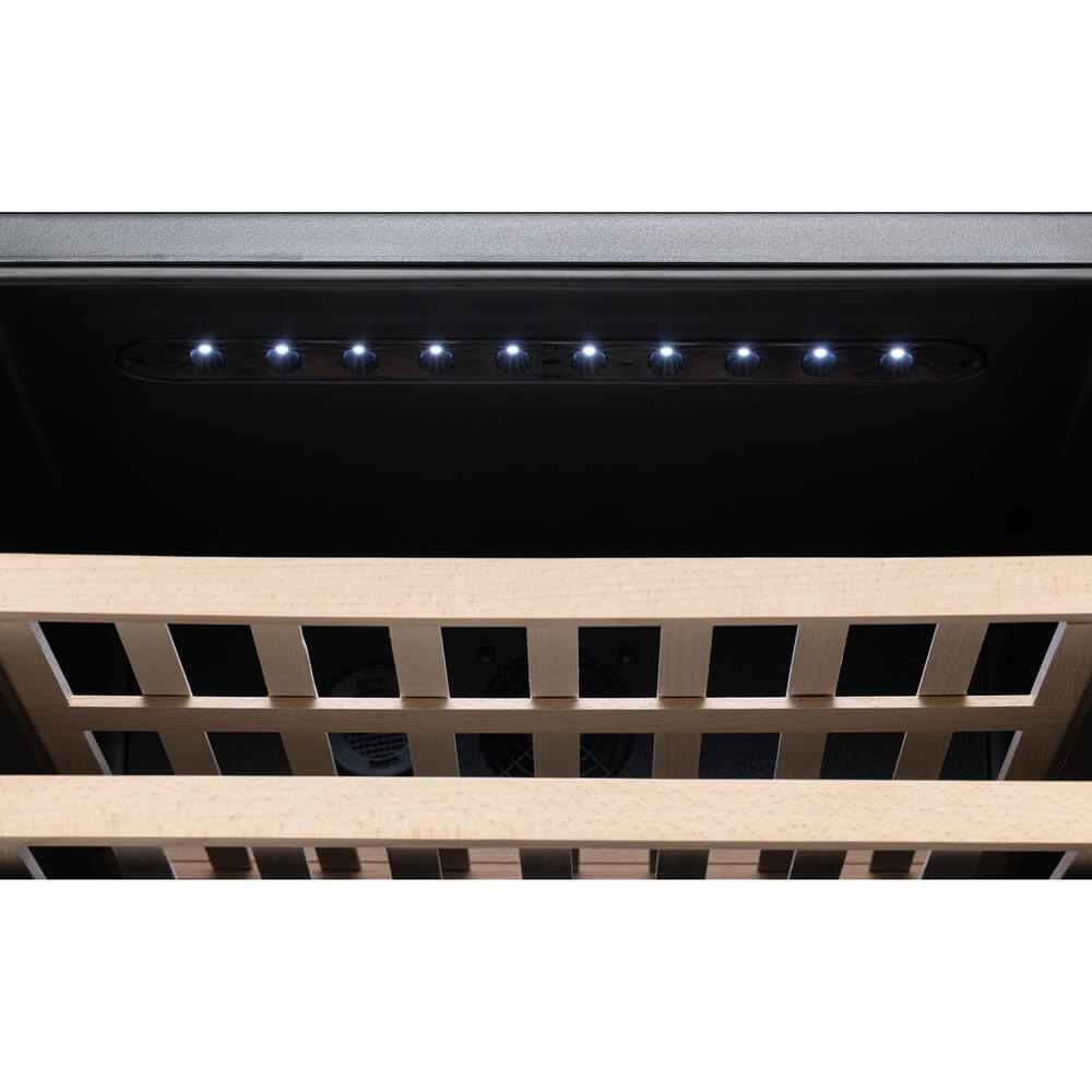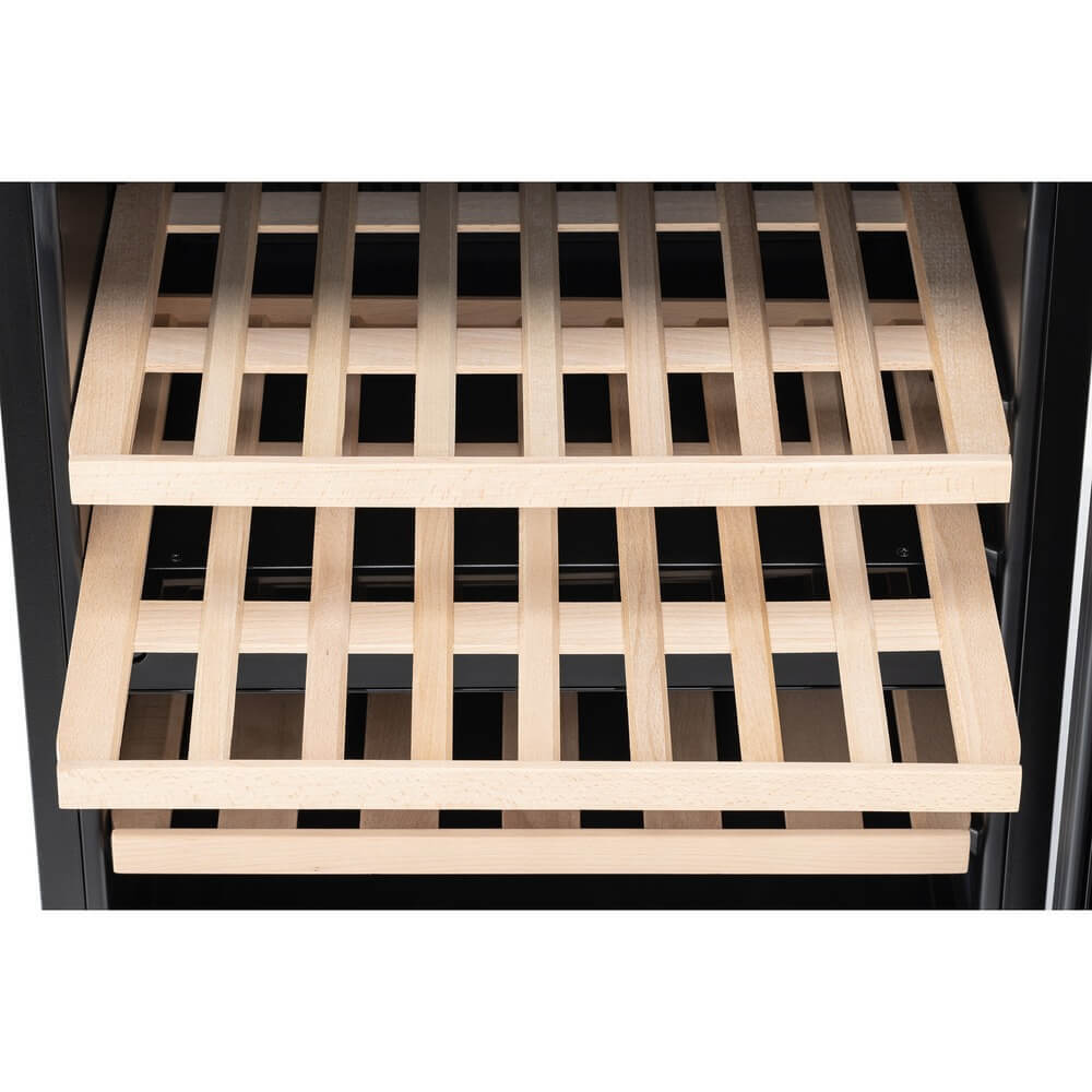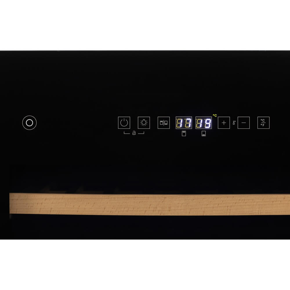 Компрессорный винный шкаф вместимостью 36 бутылок в лаконичном дизайне из черного стекла Встраиваемый винный холодильник, 60 см, push open, 36 бутылок, Шампанское , две зоны, телескопические направляющие