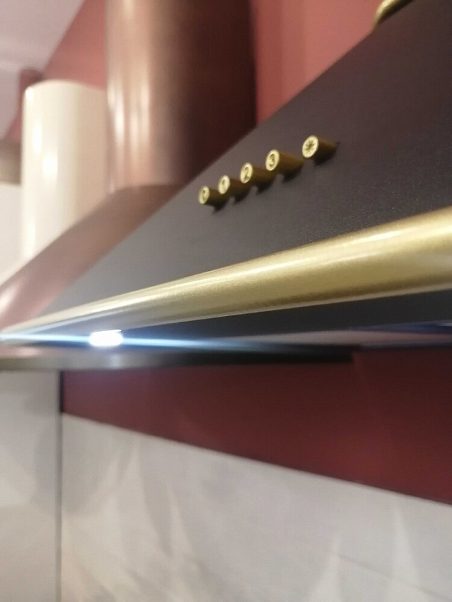 Вытяжка Korting KHC 6839 RGN — купольная модель черного цвета с фурнитурой под золото. Отлично дополнит кухни в стиле ретро. Переключение скоростей производится при помощи кнопок на фронтальной панели. Подойдет для варочных поверхностей шириной 60 и 45 см. Ключевые преимущества: Светодиодная подсветка Кнопочное управление Низкий уровень шума