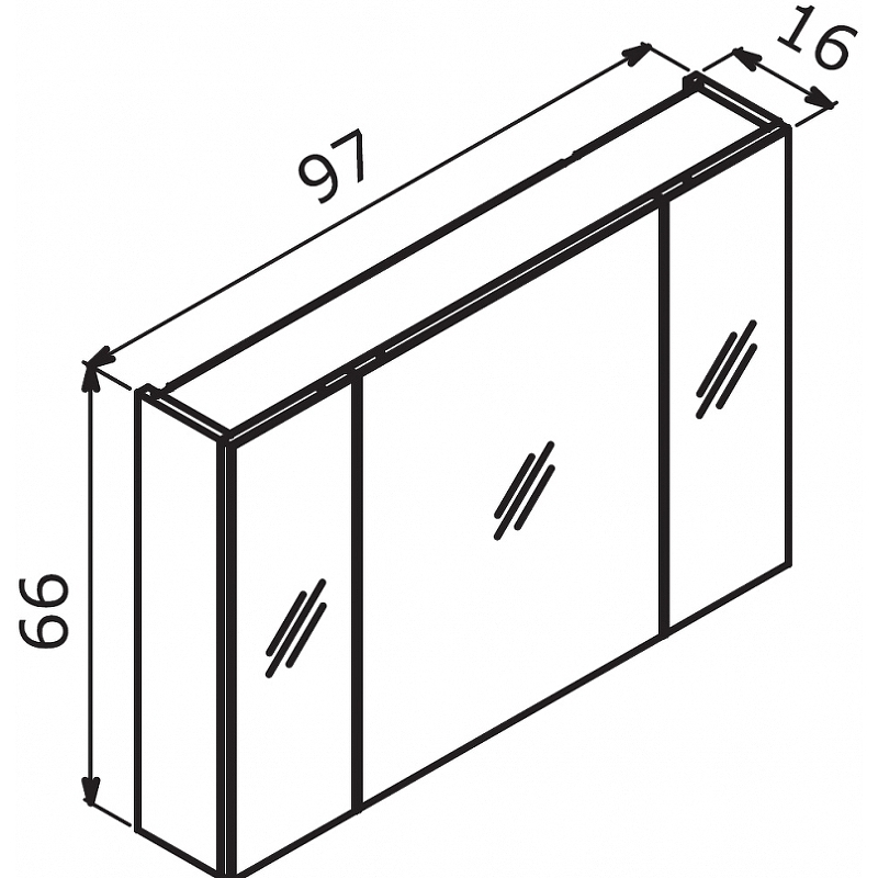 - Система хранения: 3 распашные дверцы с механизмом плавного закрывания, полки из стекла внутри шкафа.