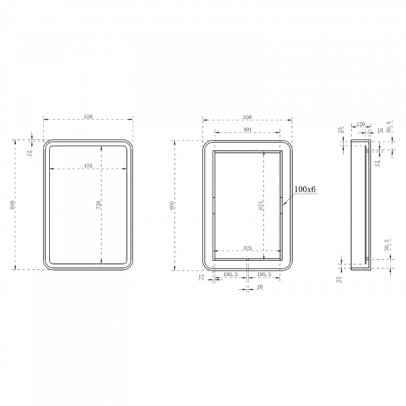 - Габариты (ШхВхГ): 550х800х120 мм.